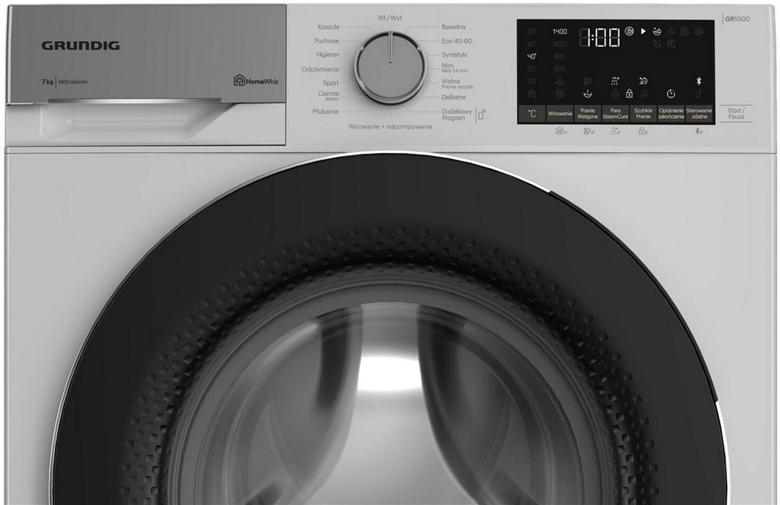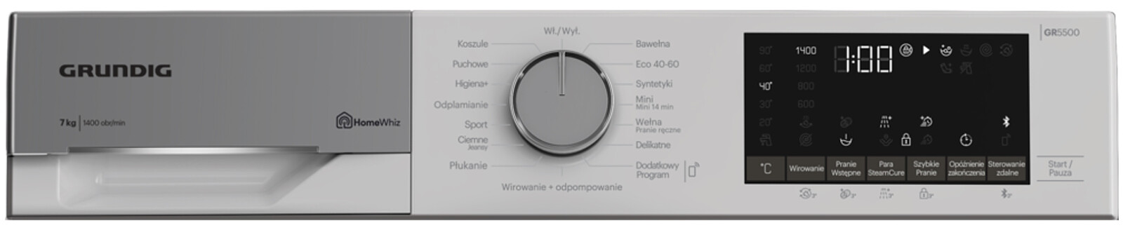 Pralka ładowana od frontu o głębokości 55 cm, pojemności znamionowej 7 kg, z maksymalną szybkością wirowania 1400 obr/min, w klasie efektywności energetycznej C. Zużywa 59 kWh energii na 100 cykli prania. Posiada zabezpieczenie przed dziećmi.