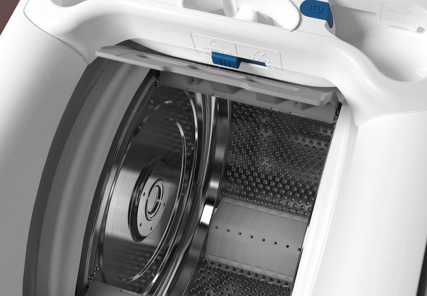 Łatwo wkładaj i wyjmuj pranie z pralki dzięki systemowi miękkiego otwierania drzwi. Otwierana za pomocą przycisku pokrywa i miękko otwierające się wewnętrzne drzwiczki zapewniają łatwy i bezpieczny dostęp do bębna. A ponieważ otwór bębna znajduje się na górze, lepiej widoczna jest jego zawartość.