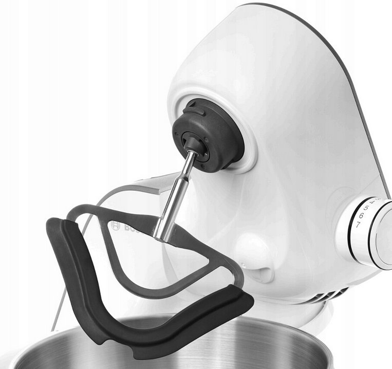 Nie można oceniać misy tylko patrząc na jej pojemność wyrażoną w litrach. Bardzo ważny bowiem jest jej kształt a także mieszadła. Aby osiągnąć jak najlepszy efekt w postaci dobrze wyrobionego ciasta, kształ misy i mieszadeł w robotach kuchennych Bosch dostosowano tak, aby jak najlepiej ze sobą współgrały. Wysokiej jakości misa ze stali nierdzewnej o pojemności 3,9l nadaje się do przerabiania zarówno małej jak i dużej ilości składników. Bez problemu przygotujesz w niej lekkie ciasto o masie do 2,7 kg lub cięższe np. chlebowe o masie do 1,9 kg.