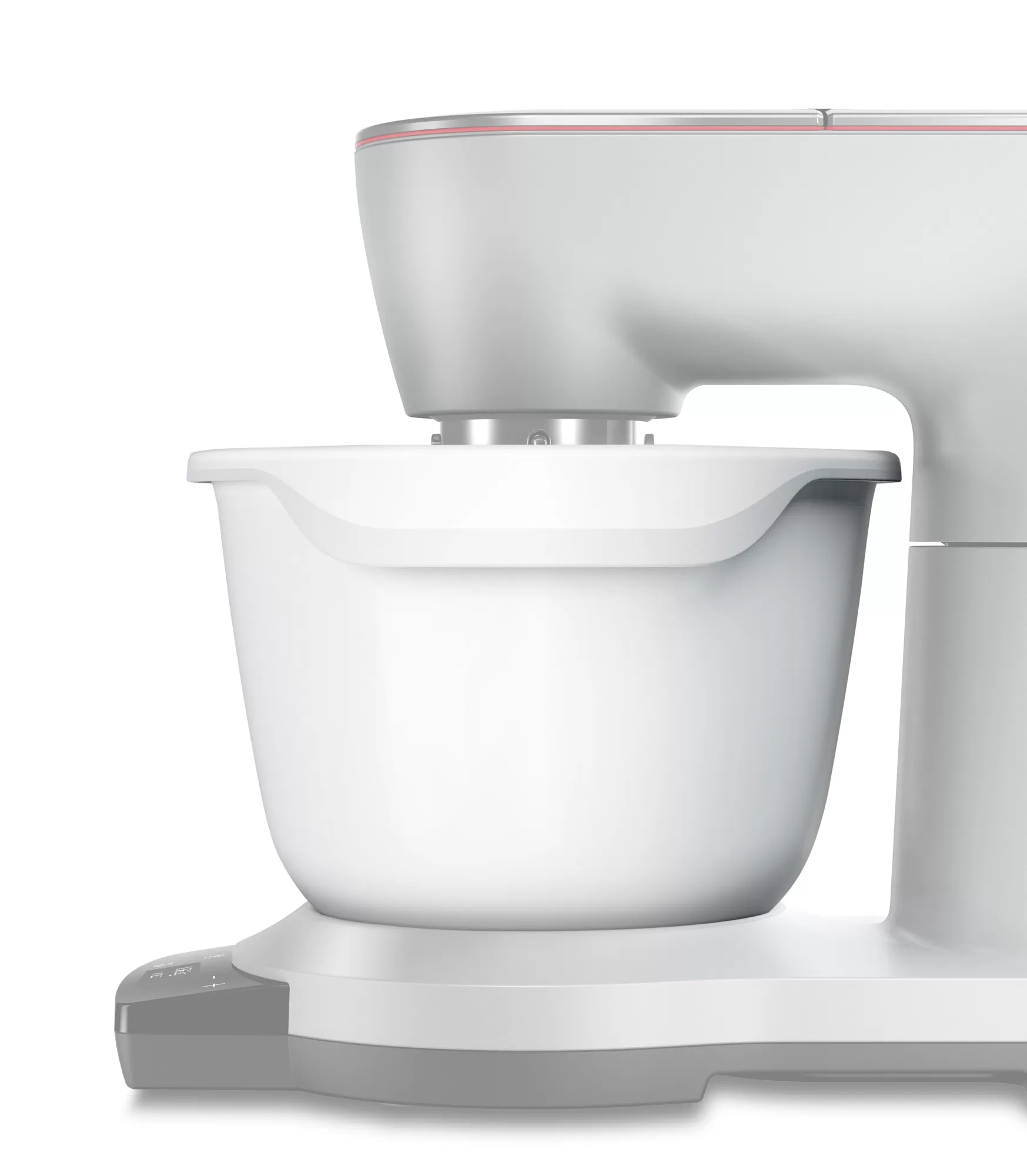 Druga misa z tworzywa sztucznego o pojemności 5,5 l. Sukces udanego ciasta drożdżowego zapewniony dzięki doskonałym właściwościom izolacyjnym misy.