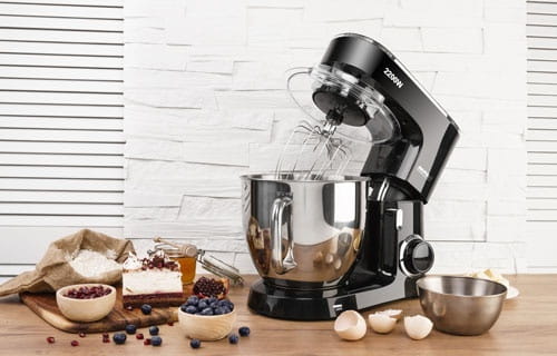 mieszadło do mieszania wieloskładnikowych mas: składników ciast, mielonego mięsa i ryb, pasztetów, ucierania sera na sernik, ubijania gotowanych ziemniaków na puree i gęstych kremów