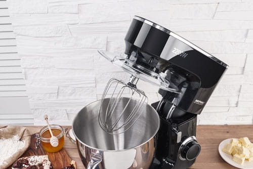 6,5 litrowa misa z rączką wykonana ze stali nierdzewnej jest bardzo wygodna w obsłudze. Z łatwością możesz ją zamontować i wymontować z robota. Dzięki specjalnej osłonie na misę nie musisz martwić się o czystość w kuchni. Dodasz niezbędne produkty podczas pracy robota bez zbędnego bałaganu.